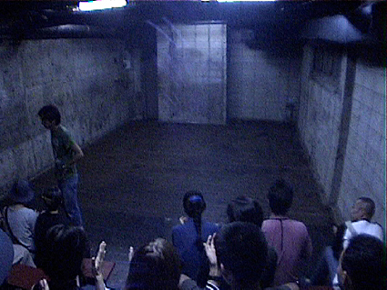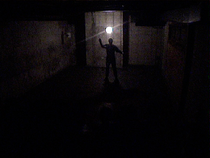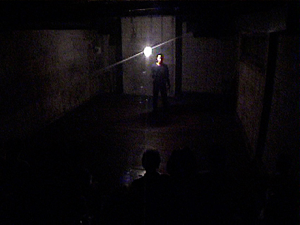 完全に闇となった会場に観客はいる。 突然、ひとりの男が、眩しく光る電球をクルクルと回しながら現れる。 その光は男が回すごとに、スルスルと彼の手元から離れてゆき、ついには大きな音をたてながら会場一杯の大きさで回る。 電球は壁面にぶつかって爆音とともに破裂し、会場は再び闇に包まれる。